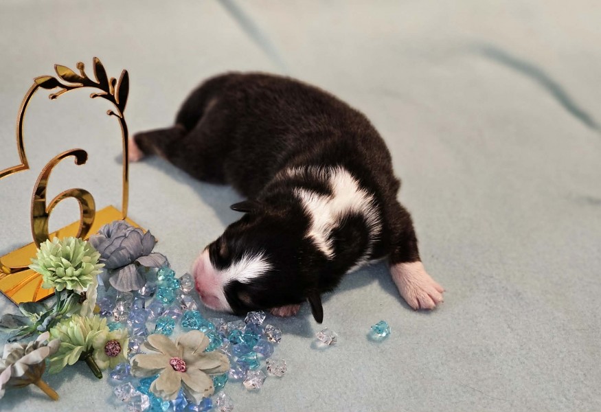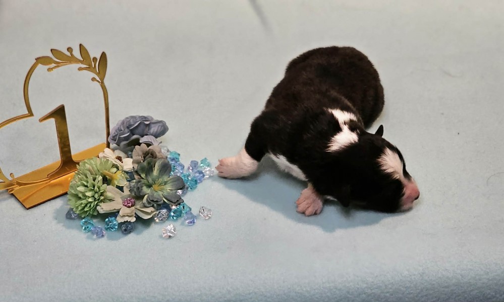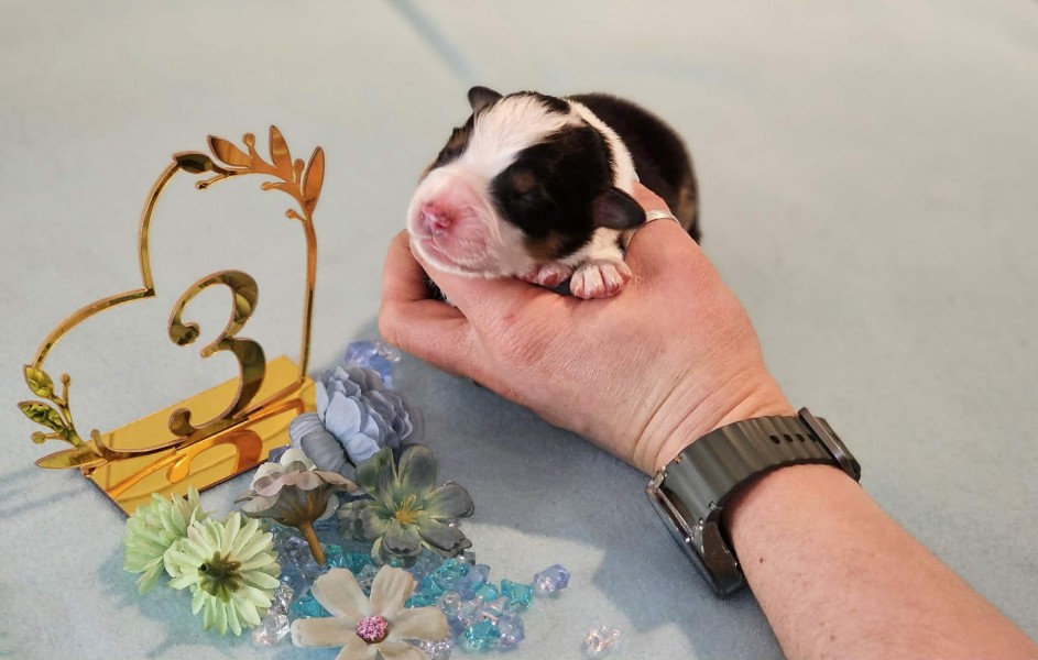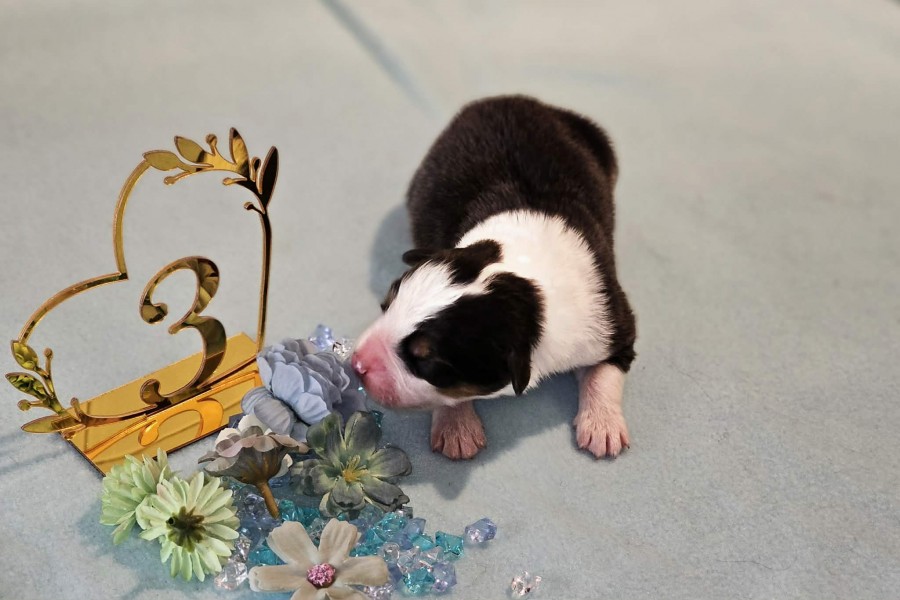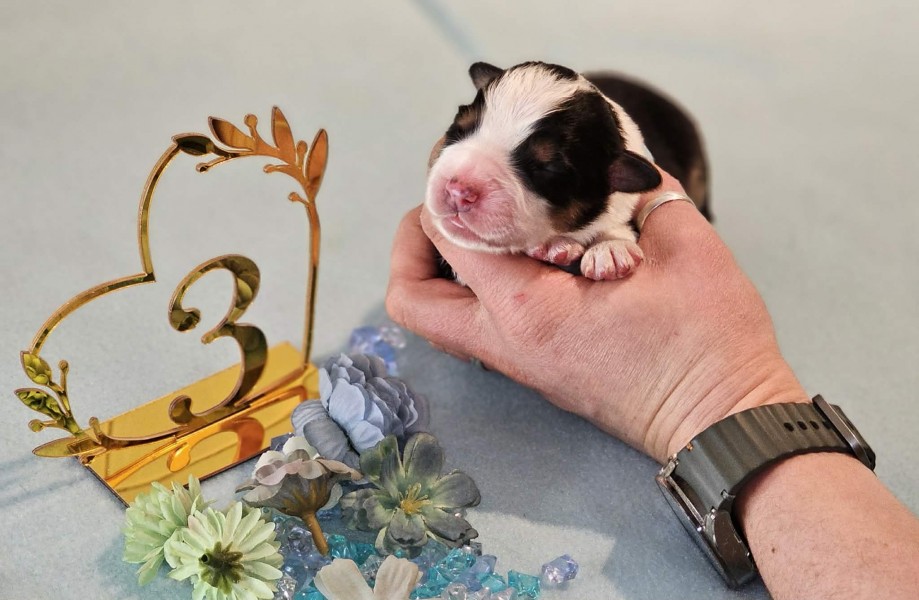 3. black tri male - natural bob tail asked/reserve ( dva černí psi jsou rezervováni )