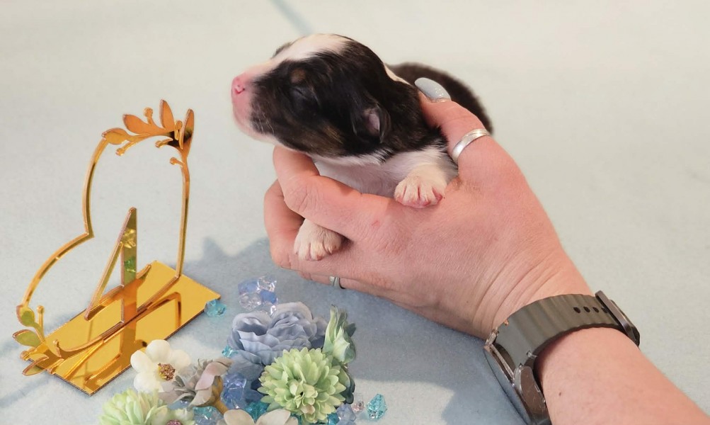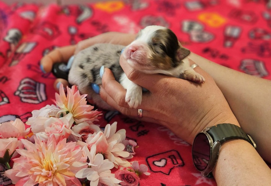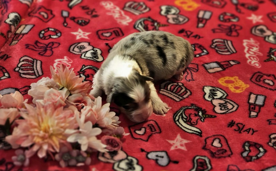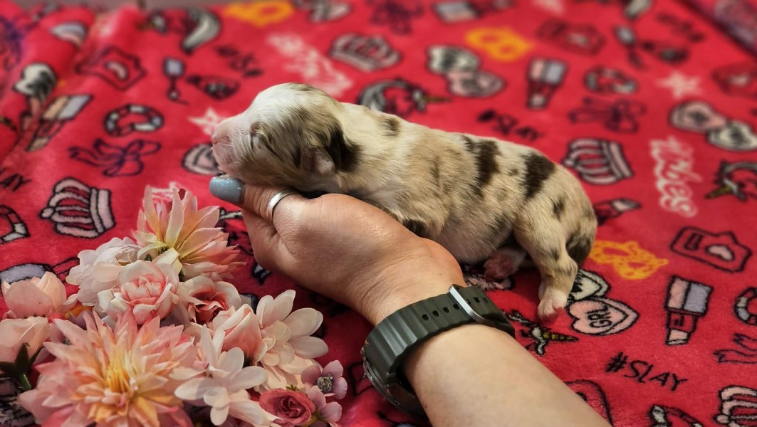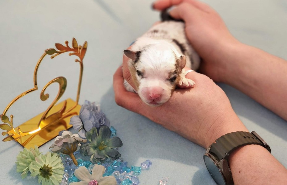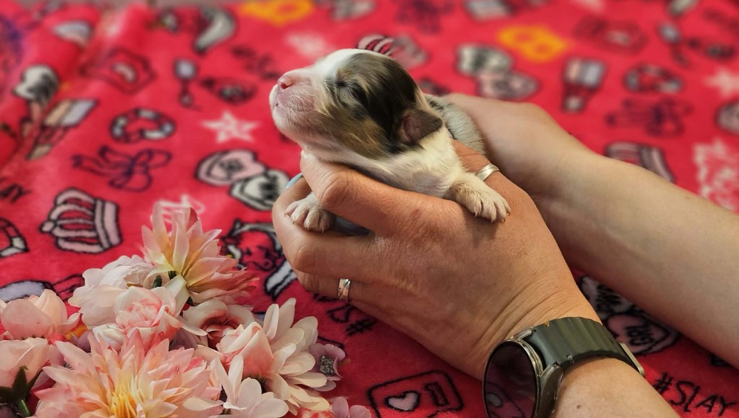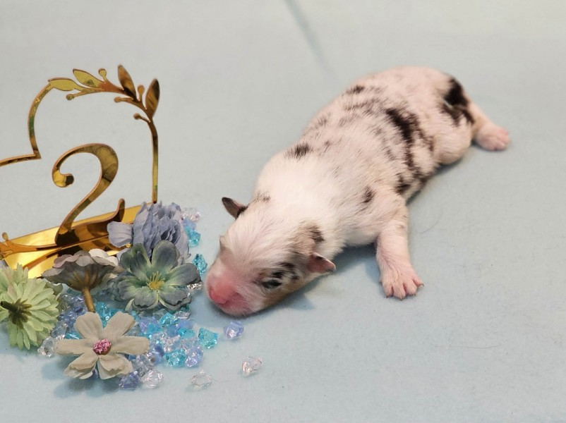 males: Rafaelo ( Black tri ), Rico ( Blue merle ) , Rocky (Blue merle ), Rodrigo ( Black tri ), Romeo ( Black tri )