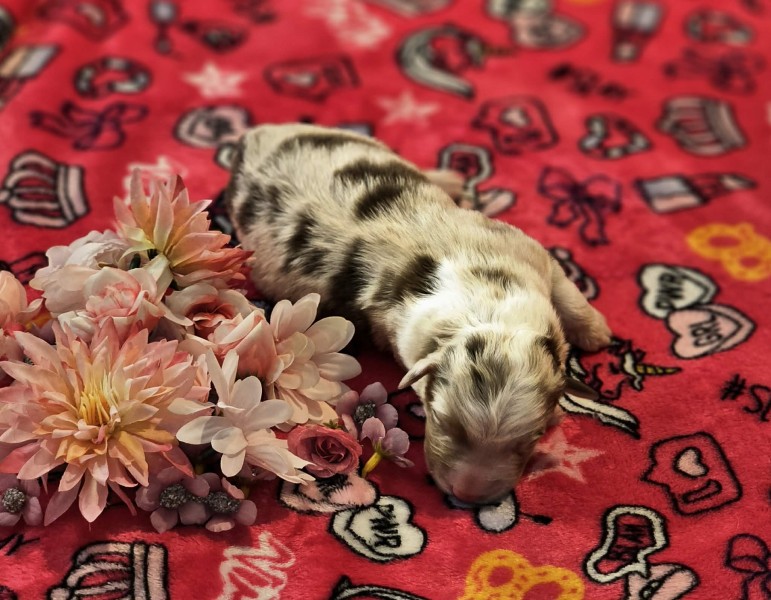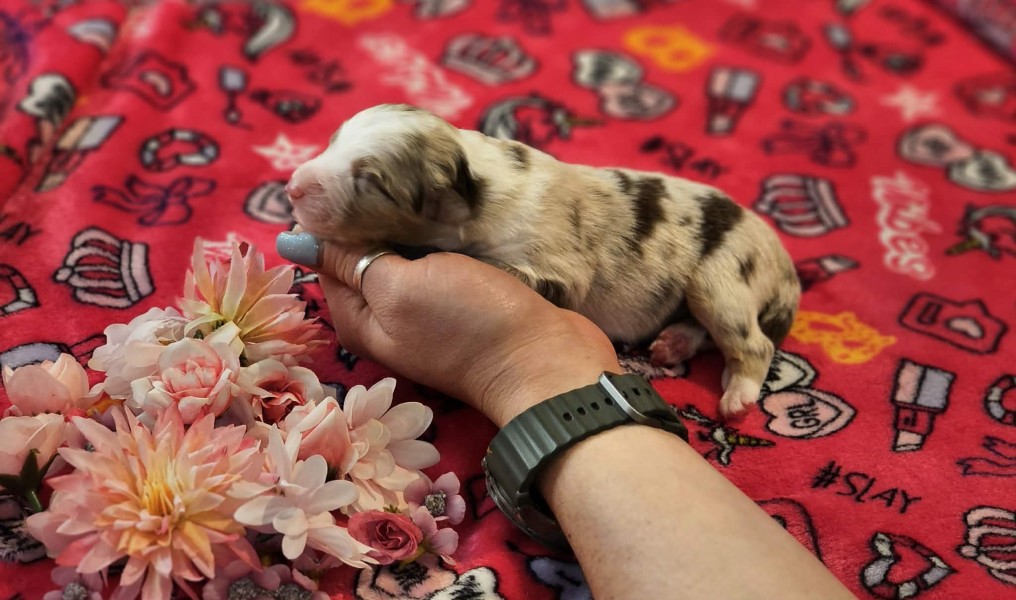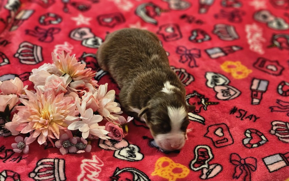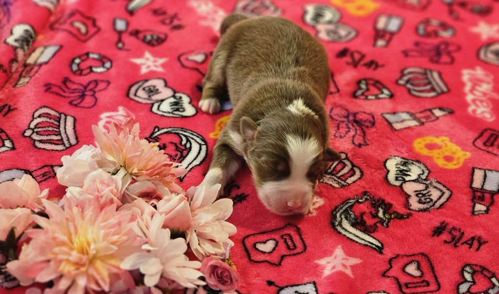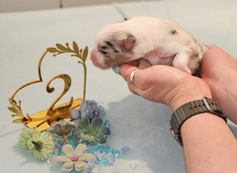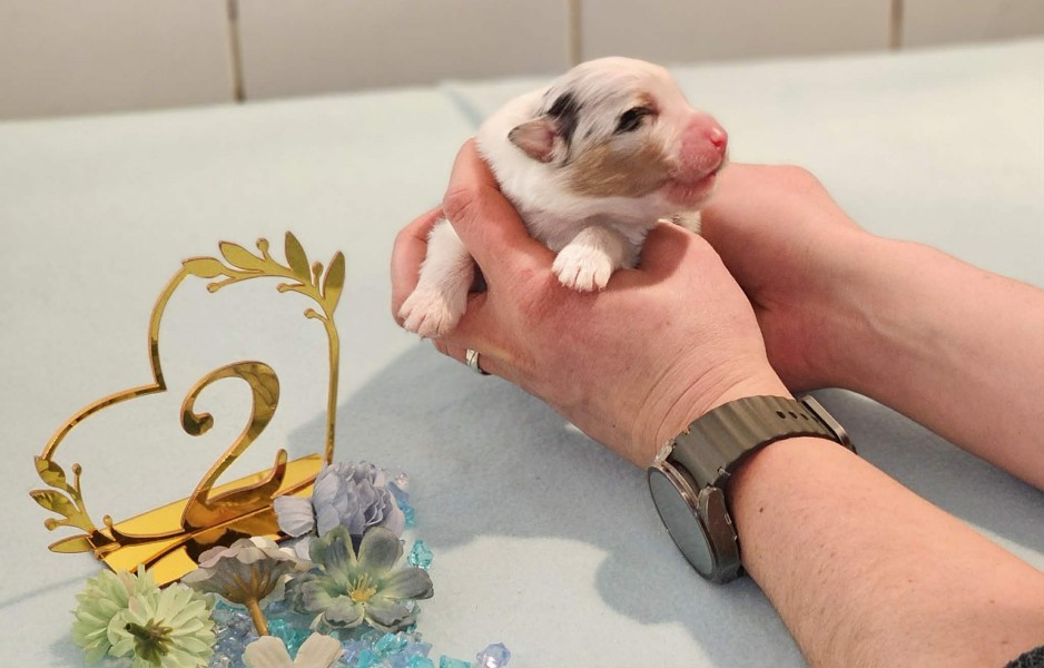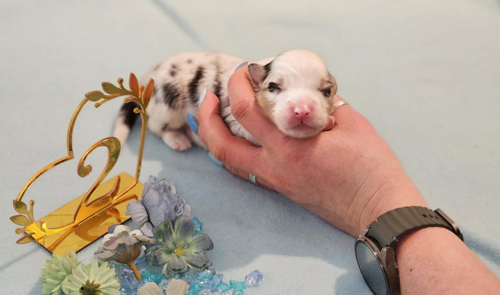 males: Rafaelo ( Black tri ), Rico ( Blue merle ) , Rocky (Blue merle ), Rodrigo ( Black tri ), Romeo ( Black tri )